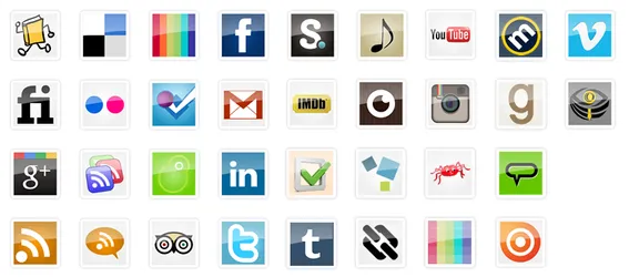 All icons were based on the original logos of the services which the icons represent. All, except the Twitter icon, which was based on work by Jon Knox.