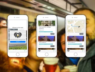 The mobile app for iOS and Android that facilitates a pub crawl in any location. The underlying data comes from Triposo and the Google Places API. The app divides the world up in a grid with small grid cells where, for every 30 minute interval, for each user in the same grid cell, it presents the same three, places to get a beer.