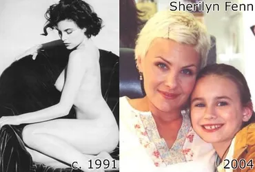 Sherilyn Fenn c. 1991 and, with Alix Kermes, in 2004. Sources: [1], [2].