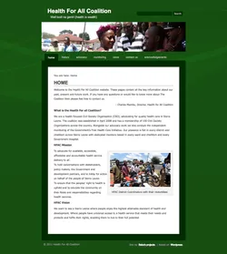 Health for all Coalition . org January 18, 2011 • Work Straightforward WordPress implementation.Related: National Audit Office of Tanzania global health health HFAC NGO Sierra Leone Wordpress This text is available under a cc-nc-a license. Previous Previous post: accountability.or.tzNext Next post: Uganda Radio Network