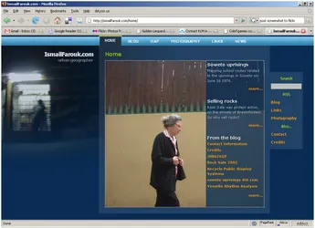 The website is cool in that most of the content is managed remotely: Flickr images, Del.icio.us links, Google News and Blogger Blog. Then, there’s also an integrated Google Maps mashup.